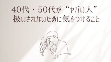 40代・50代男性がマッチングアプリでやりがちな「やばいメッセージ例」と改善法を紹介。天気の話ばかり、一言だけの返信、自己開示ゼロなど女性が一瞬で冷めるNG行動を避け、好印象を与える会話術を解説します。