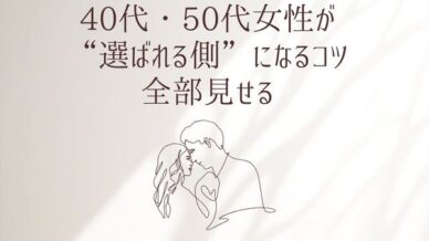 40代・50代の恋活で「年齢」「バツイチ」「見た目」などのコンプレックスが気になる人へ。マッチングアプリで弱点を“魅力”に変える具体的な方法と、実際に恋が進んだリアル体験談を紹介。今日からできる恋活術を解説します。